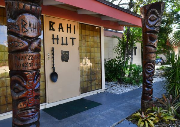 Bahi Hut, the oldest tiki bar in Florida, located at Golden Host Resort.